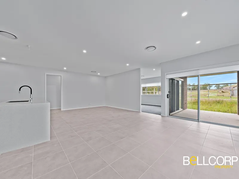 # Spacious, light filled open-plan living and dining space flowing onto the covered alfresco area.