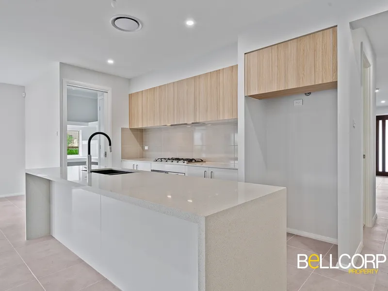 # Gourmet kitchen with huge island bench, stunning splashbacks, 900mm oven and cooktop.