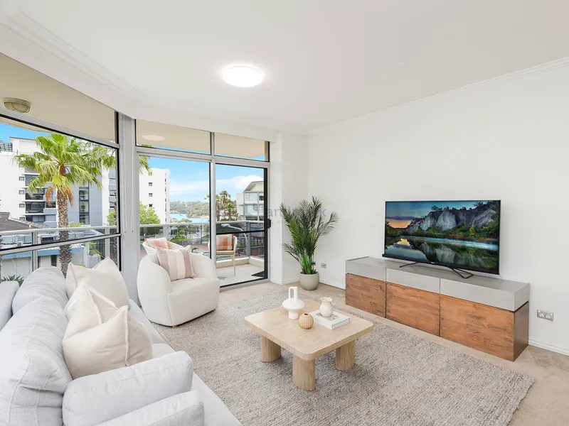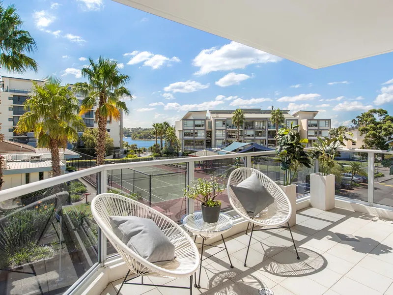 Occupying a desirable corner position, this contemporary apartment offers an ideal low-maintenance lifestyle in a resort style setting. Boasting open plan living and dining spaces with an abundance of natural light and flowing effortlessly out to a spacious wrap-around balcony capturing views of the bay.