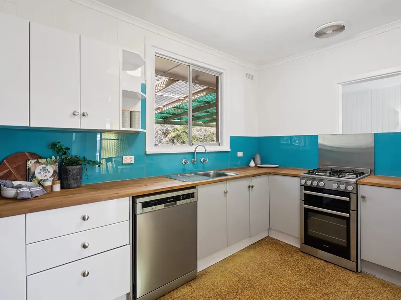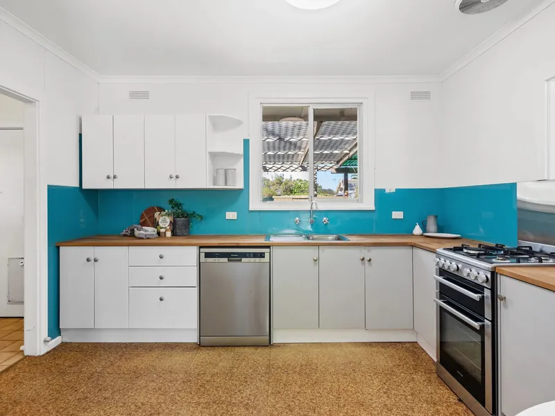 The home features a light filled living area positioned at the front, flowing through to a functional kitchen and adjoining meals space. The kitchen is well equipped with ample bench space and storage, overlooking the outdoor entertaining area to keep you connected while hosting or enjoying everyday living.