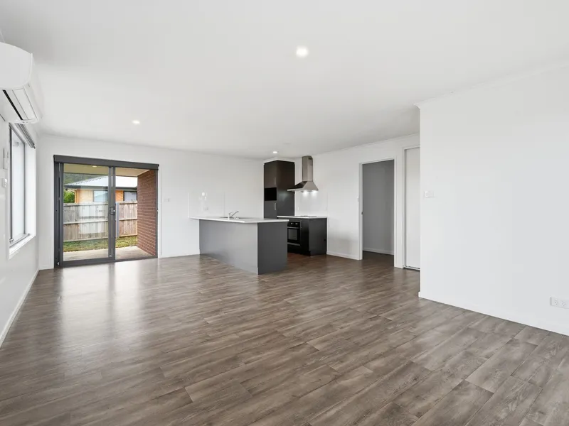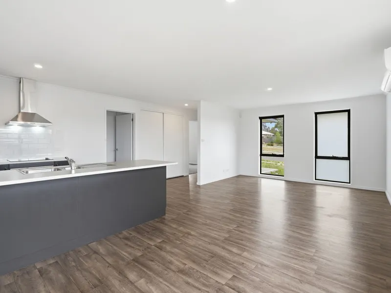 The home features a light-filled open plan living and dining area, complemented by a functional kitchen with ample storage and modern appliances. The layout provides easy living for families, couples or professionals seeking a low-maintenance home.