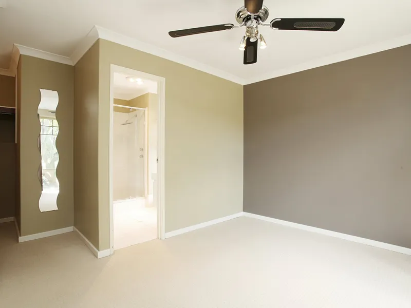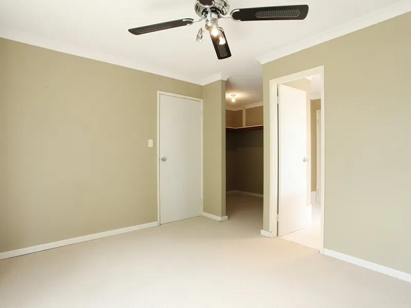 * Large master with ceiling fan and walk in robe.