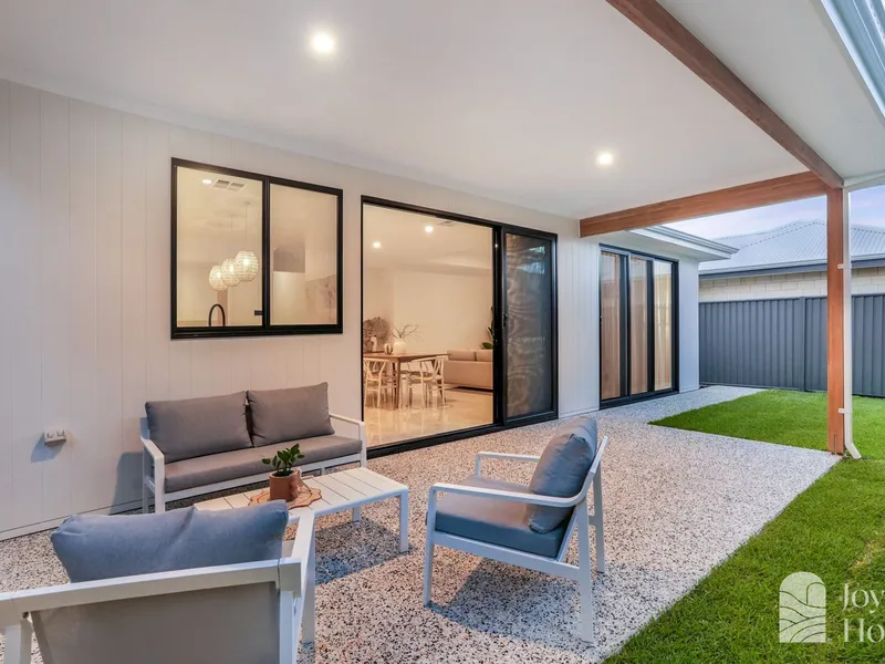 This beautifully designed 4-bedroom, 2-bathroom residence offers the ideal balance of comfort, space, and modern living. The open-plan living area is filled with natural light, creating a bright and inviting space to unwind. The stylish galley kitchen features generous cupboard space and practical design for everyday cooking. At the heart of the home is a welcoming dining area perfect for family meals or entertaining friends. The master bedroom comes complete with a walk-in robe and ensuite, while the additional bedrooms provide flexibility for family, guests, or a home office. Outside, enjoy a spacious enclosed patio and an easy-care backyard designed for relaxed living.