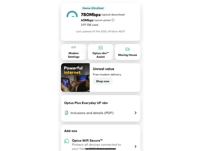 Free OPTUS ULTRA Fast internet service