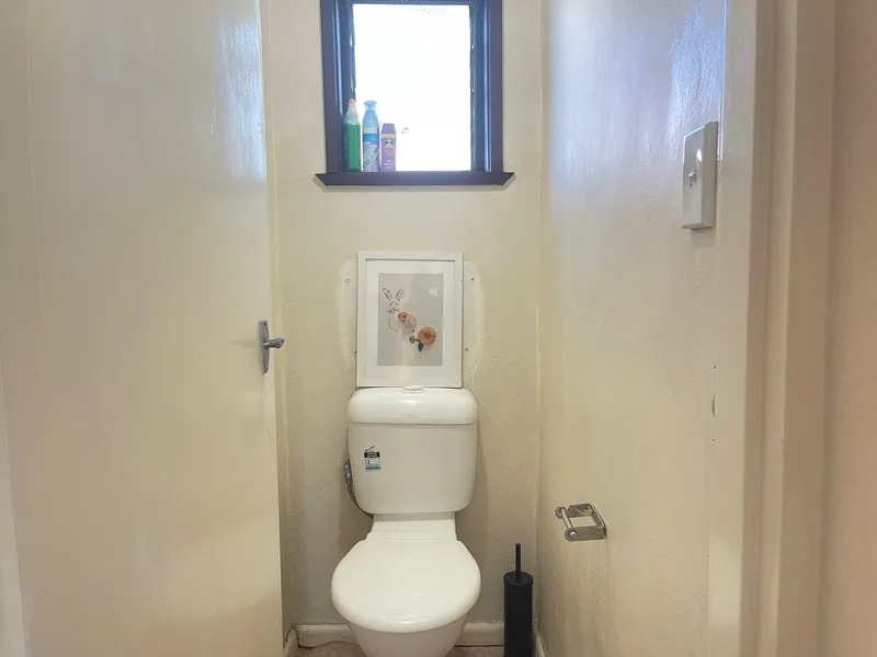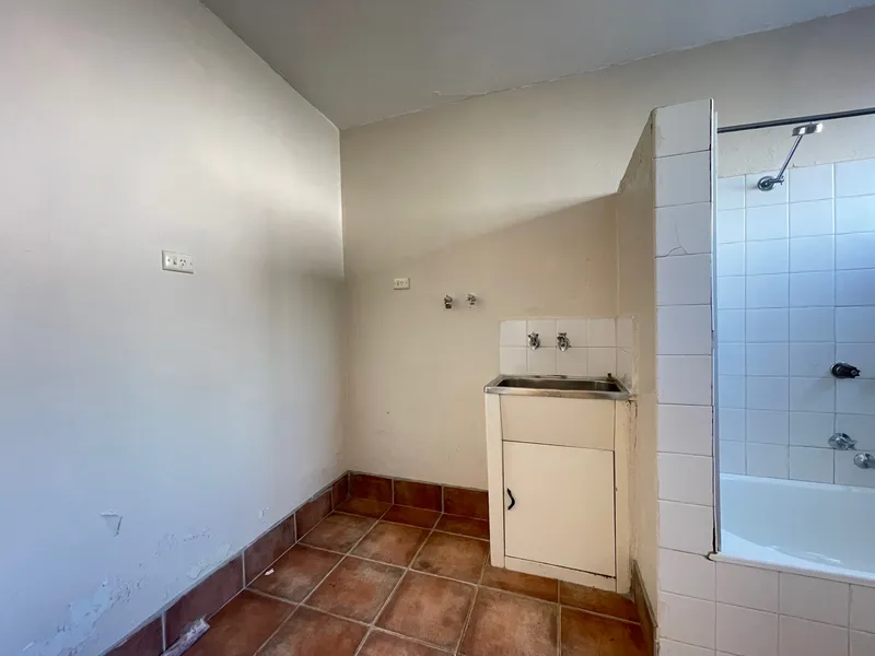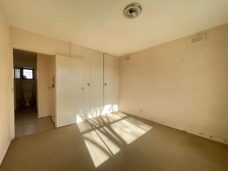 Each bedroom is quite generous in size and both have built-in-robes. There’s an entrance hall, central bathroom with laundry, spacious living room which can turn into a third bedroom with a well-appointed gas kitchen. There’s also an open car space.