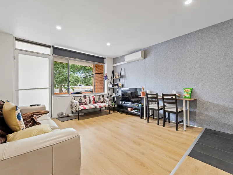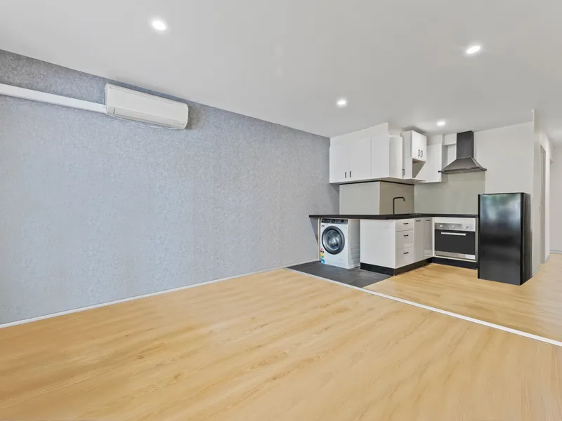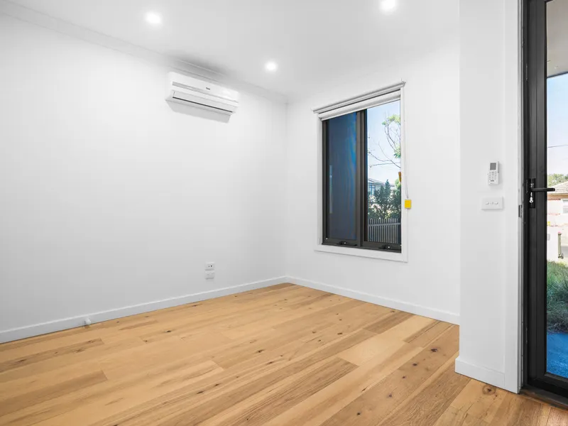 The light-filled open-plan living and dining area enjoys abundant northern sunlight and is complemented by a modern gourmet kitchen. Accommodation includes three bedrooms, a stylish central bathroom, and split-system heating and air conditioning for year-round comfort.