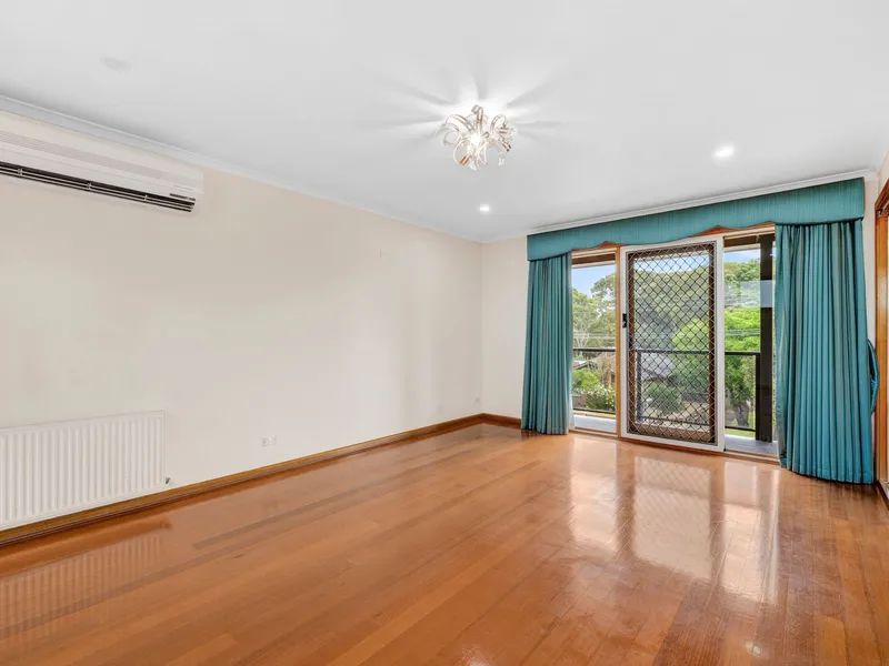 The home features a spacious master bedroom complete with mirrored built-in robes and a private ensuite, while three additional bedrooms (all with built-in robes) are serviced by a central bathroom with separate bath and shower.