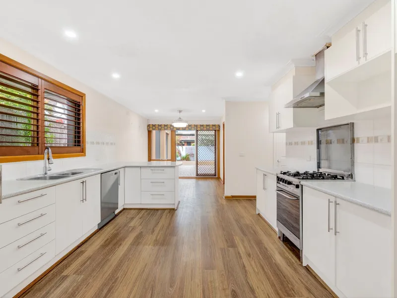 A light filled living area flows through to the well-appointed kitchen, offering gas cooking, a dishwasher and an adjoining dining space - ideal for everyday living. Outdoors, a large alfresco area and private rear garden provide the perfect setting for entertaining or relaxing.