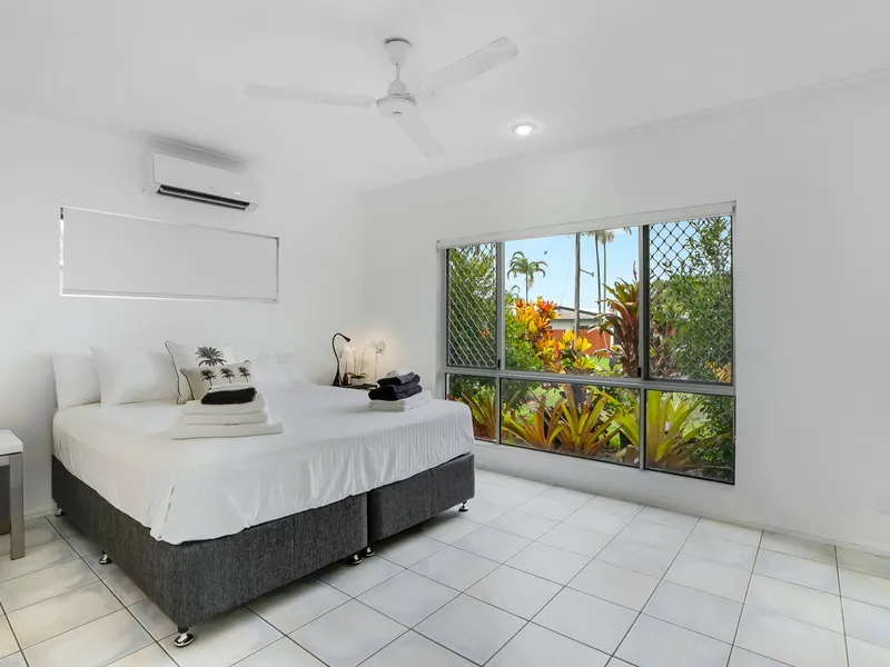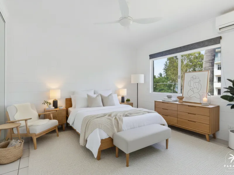 A fully furnished top floor apartment in Clifton Sands only 50m from the Beachfront of Clifton Beach. A spacious one bedroom suite with an outdoor balcony and spacious living space all within close proximity to the beach, restaurants, cafes, Clifton Village Shopping Centre and the direct path along the shore line to Palm Cove. The home is fully air conditioned, with an open plan kitchen and living layout, spacious bedroom, bathroom and laundry and access to the communal lagoon pool.