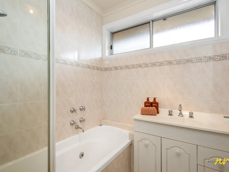 This well-appointed 3-bedroom home offers comfort, space and versatility, making it perfect for a growing family. All three bedrooms are fitted with built-in robes and ceiling fans, while the main living area features a split system for year-round comfort. The light-filled kitchen and meals area features the original cooktop & oven and is complemented by a gas wall heater in the downstairs dining space, ensuring warmth during the cooler months, and a separate living area adds further flexibility for family living.