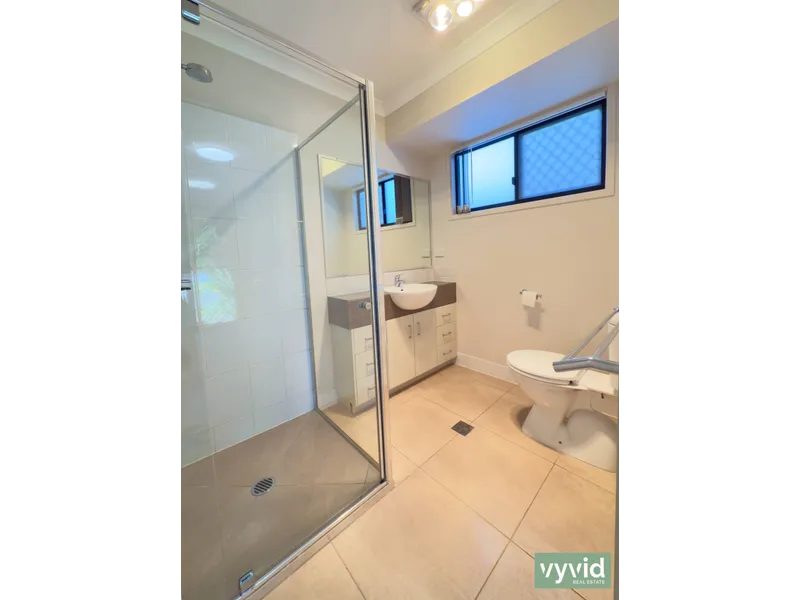 - Main carpeted bedroom with walk in wardrobe, split system air conditioning and ensuite