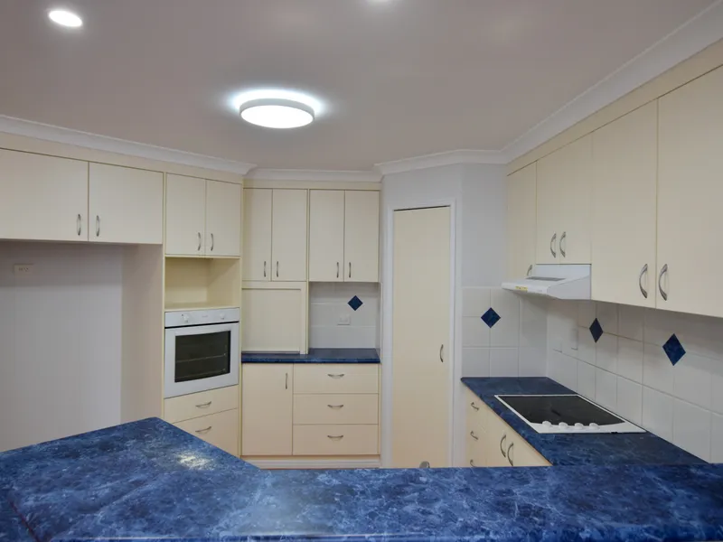 :: Kitchen with generous bench space, corner pantry, electric appliances, and dishwasher