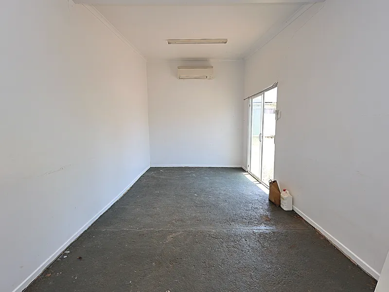 Set on a generous sized block of land, with a bore to keep the grass green, is this cute little shed with airconditioned office with kitchenette & a bathroom external to the shed. A great space looking for just the right person!