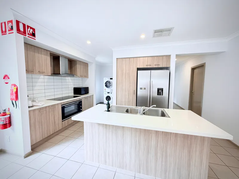 At the heart of the home is a modern and stylish kitchen, fitted with stone benchtops, stainless steel appliances, a walk-in pantry, and a central island bench overlooking the spacious open-plan living and dining area. This space flows seamlessly to the alfresco deck and low-maintenance backyard, perfect for outdoor entertaining or creating your own garden retreat.