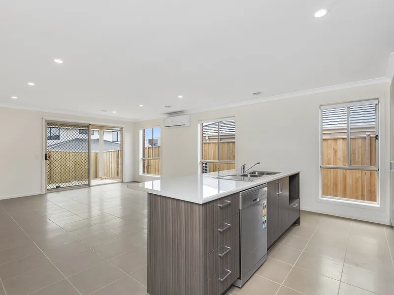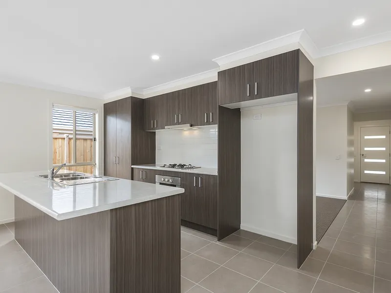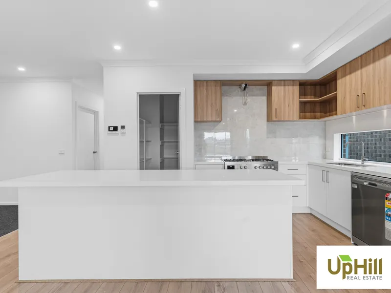 Continuing down the property flows into the heart of the home and the kitchen is equipped with ample storage including the walk-in pantry, stone benchtops throughout including the spacious breakfast bench. Flooded in natural light the kitchen overlooks the open plan living and dining space and seamlessly flows onto the undercover alfresco area and low maintenance and fully enclosed backyard.