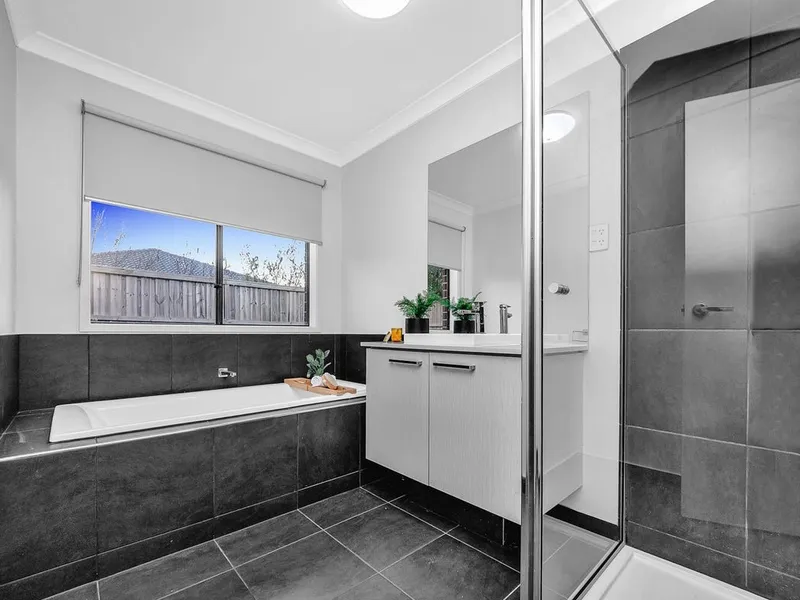 The home comprises four well-proportioned bedrooms, including a master suite featuring a walk-in robe and private ensuite. Two stylish bathrooms have been thoughtfully designed to provide everyday convenience and comfort for families of all sizes.