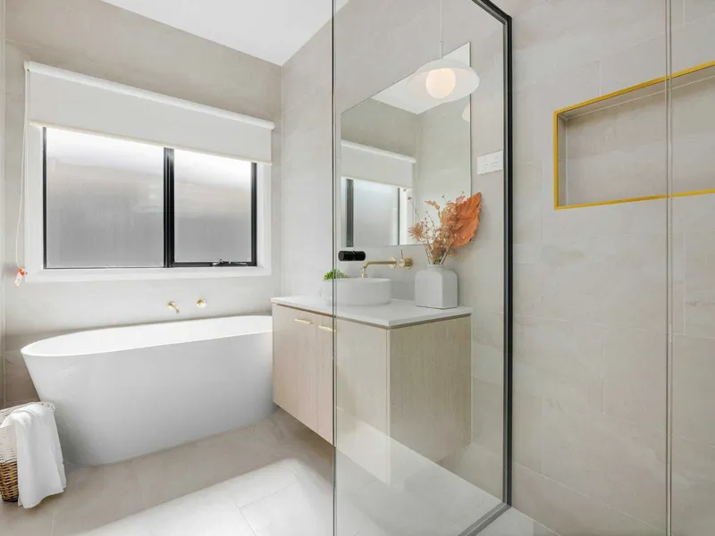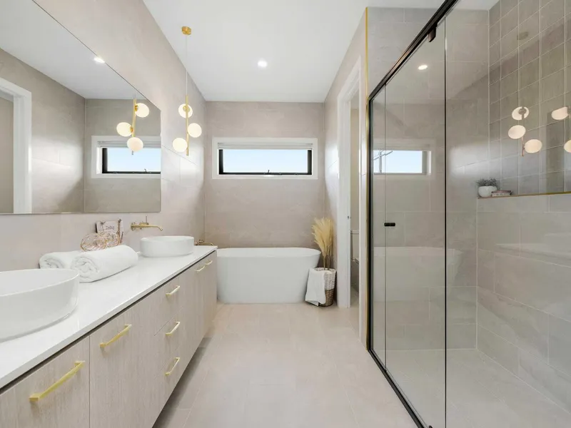 The master bedroom is grand in size and feel, with beautifully finished ensuite with freestanding bath and walk in wardrobe.