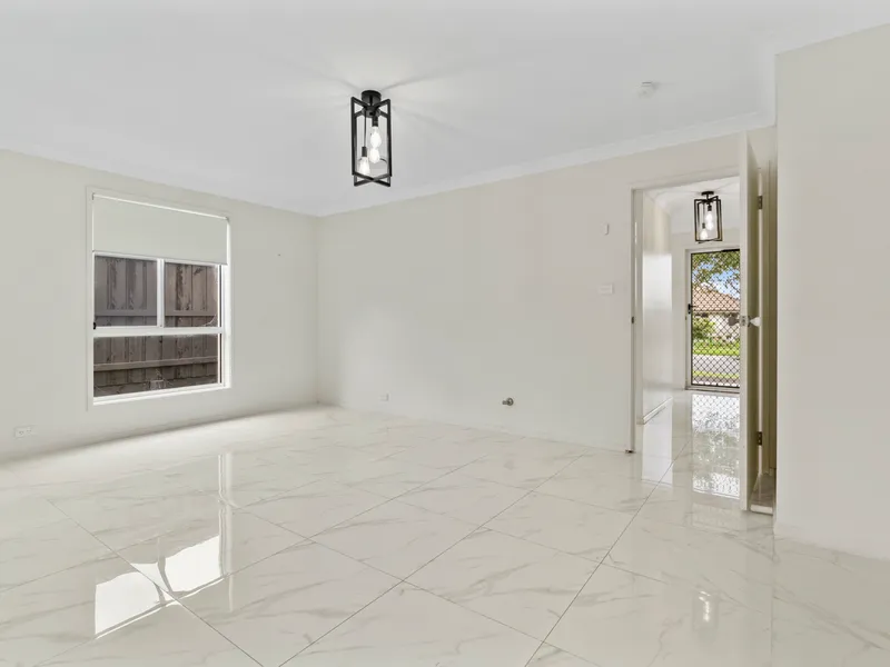 It features a spacious and bright living area, a modern kitchen, a dining area that opens onto a covered outdoor entertaining area.