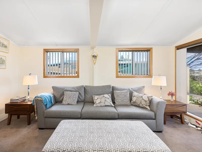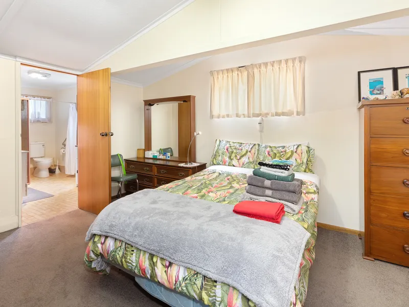 Inside, the home features a flexible floor plan, with a living area that overlooks the stunning views, a well-maintained kitchen, and a spacious main bathroom. The two bedrooms provide comfortable accommodation, and a detached room on the property serves as a sleepout, teenage retreat, or additional storage space.