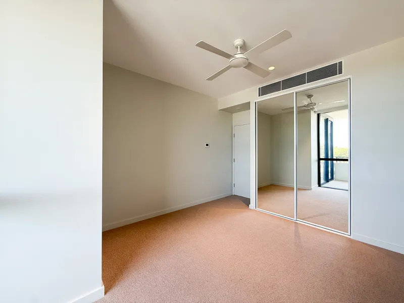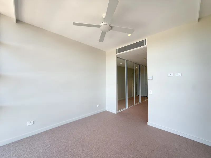 Both bedrooms are generously proportioned and include mirrored built-in wardrobes and ceiling fans. The master bedroom features its own stylish ensuite, while the second bedroom is conveniently serviced by the sleek main bathroom located nearby, offering comfort and practicality for residents and guests alike.