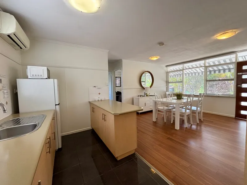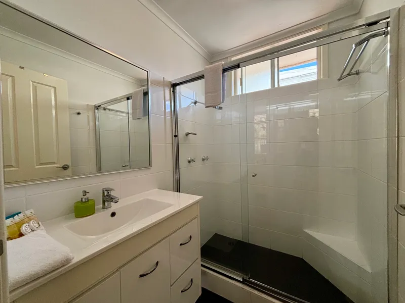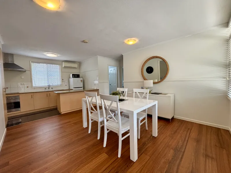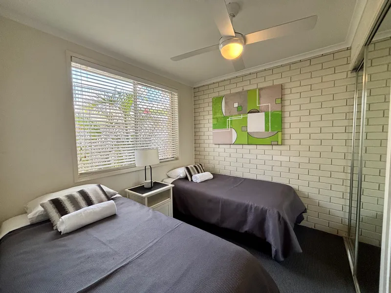 This fully furnished 2 bedroom unit is just 150m from the beach... and securely positioned in a gated complex!
