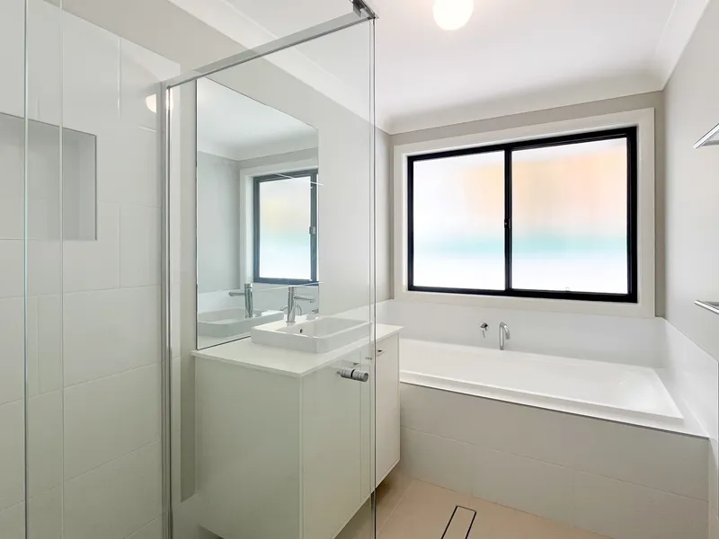 Newly built and designed with comfort in mind, the home offers an open-plan layout complemented by ducted air conditioning for year-round comfort. Complete with brand new appliances and fixtures, the well-equipped kitchen features a dishwasher, oversized oven, and breakfast bar, flowing seamlessly into the bright and spacious living area. Easily accessible from the large sliding doors, the covered patio leads you out to the low maintenance yard.