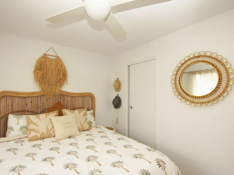 Upstairs, you'll find two of the three comfortable bedrooms, all with built in wardrobes and ceiling fans, along with a handy study nook. The third bedroom is located downstairs.