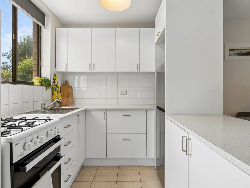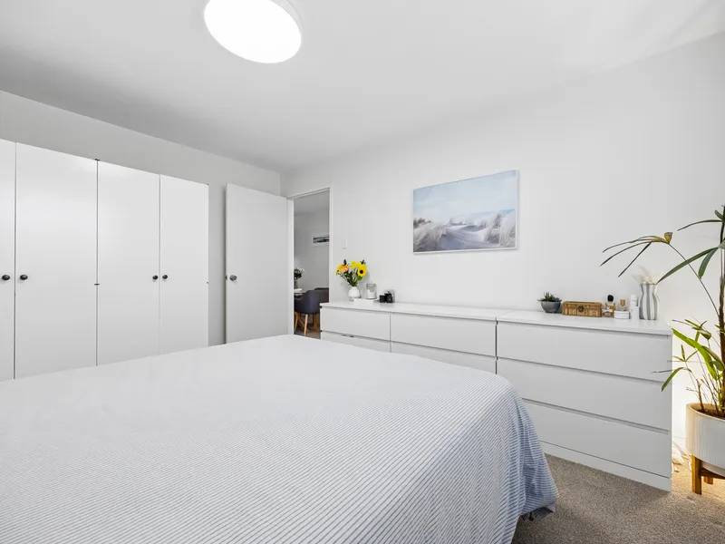 Set back from the street and accessed via Greenock Avenue and a rear laneway (Iris Lane), this top-floor home offers a peaceful, effortless lifestyle. The open-plan kitchen, dining, and living area opens onto a balcony, allowing fresh air and natural light to flow through the home. Both well-sized bedrooms feature built-in robes, while the fresh white kitchen and spacious combined bathroom/laundry make daily living simple and convenient.
