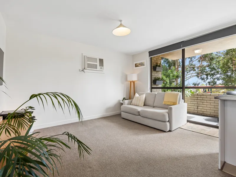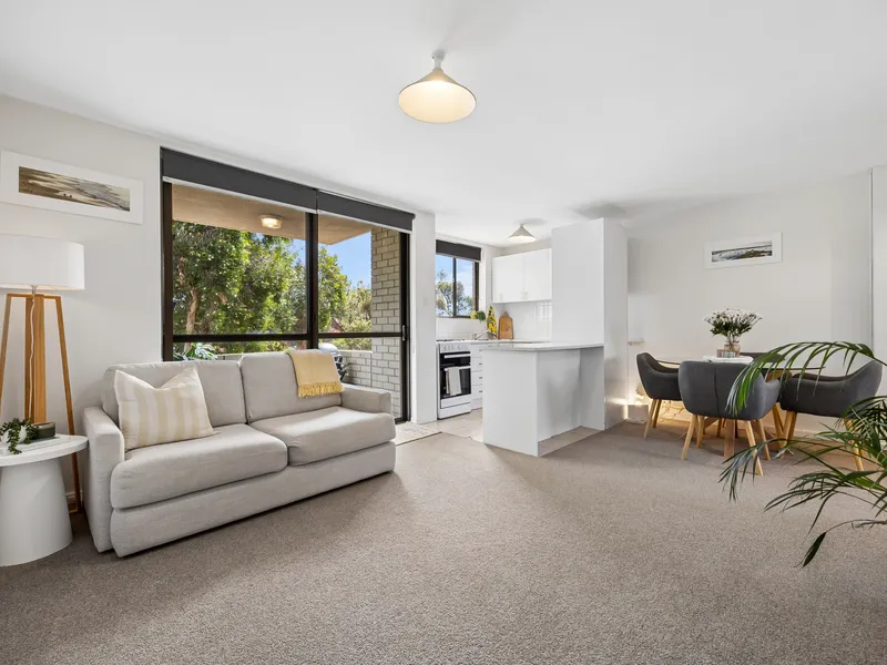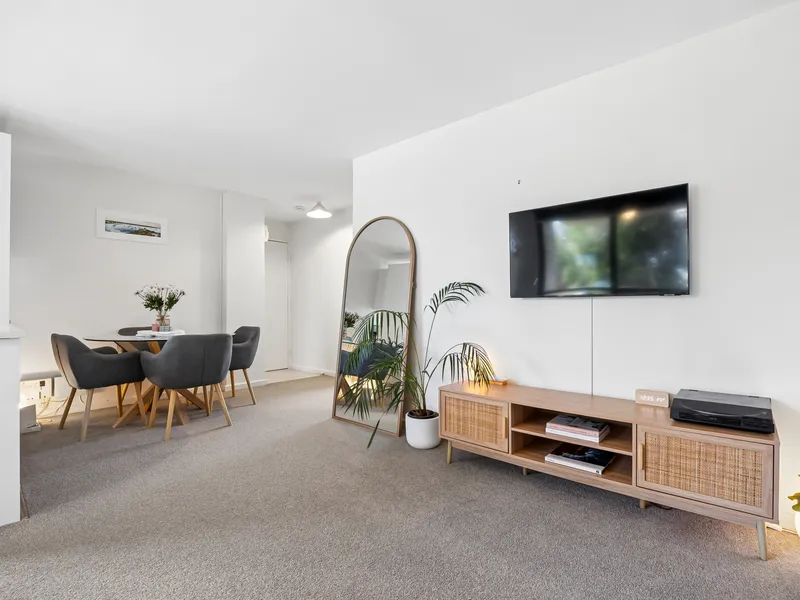 The home features a practical layout with a light-filled living area and a functional kitchen with ample storage and bench space. Both bedrooms are well sized, making the home suitable for couples, small families, or professionals looking for a low-maintenance property.