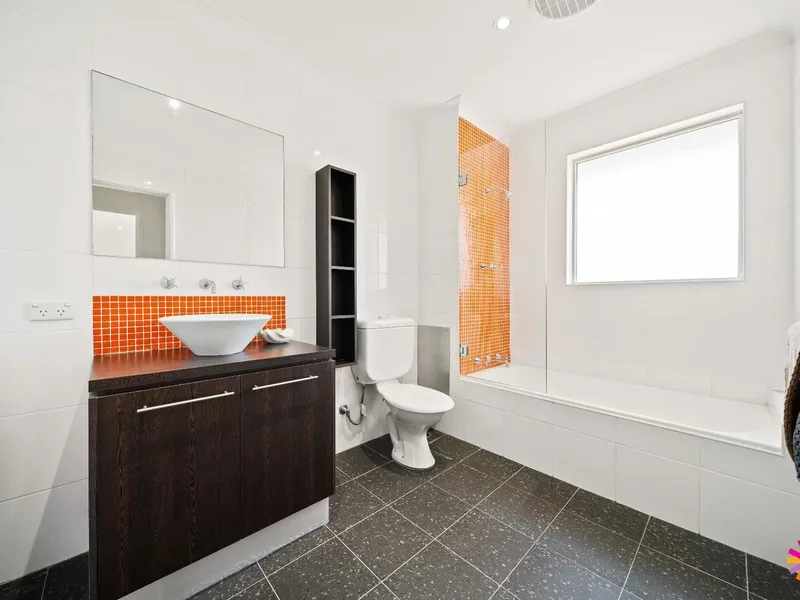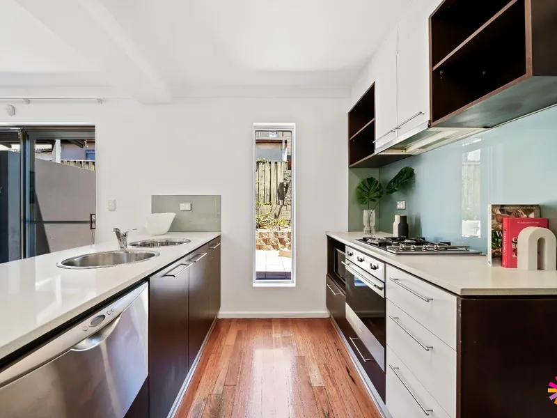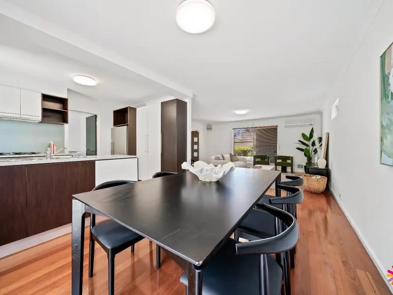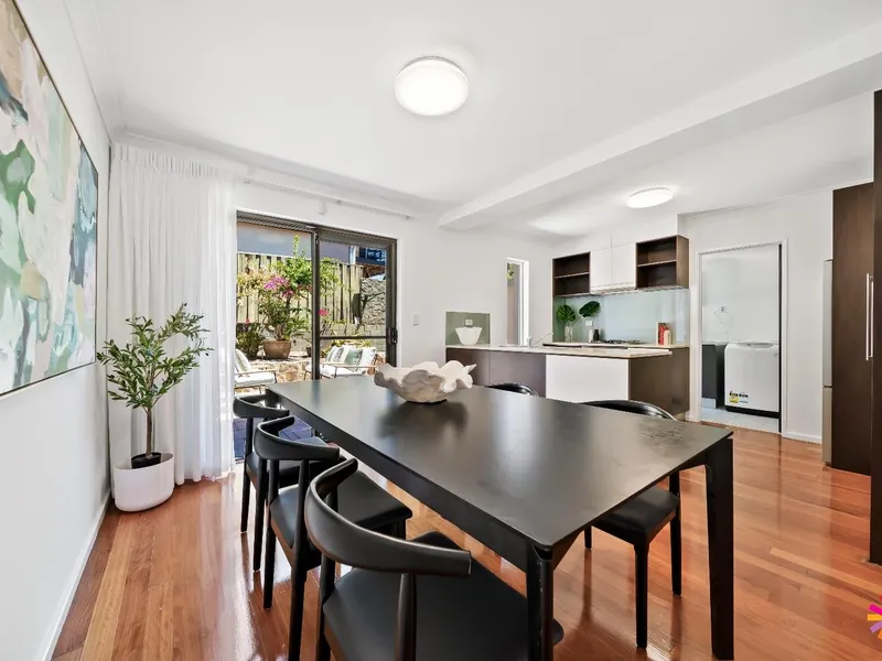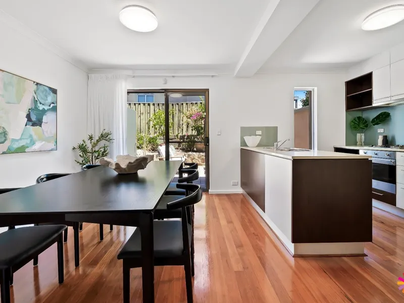 The open-plan living and dining area extends to a fenced courtyard, perfect for entertaining or simply relaxing.