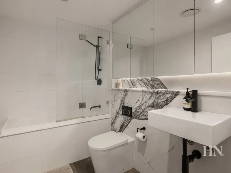 Tucked away at the quiet rear of the complex, this spacious and luxurious apartment enjoys a private balcony and abundant natural light, offering an exceptional urban lifestyle surrounded by some of the Inner West's best cafés and restaurants. The interiors are beautifully appointed with sophisticated neutral tones and a generous open-plan kitchen, living and dining area. Elegant New York marble features in both the kitchen and bathroom, while the spacious bedroom includes a large built-in wardrobe and direct access to the north-east facing balcony. Perfectly positioned on the ever-popular Majors Bay Road, it is within easy walking distance of the area's leading cafés and restaurants, Coles, boutique shops and public transport.