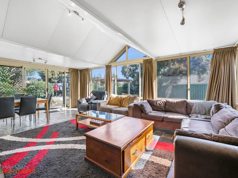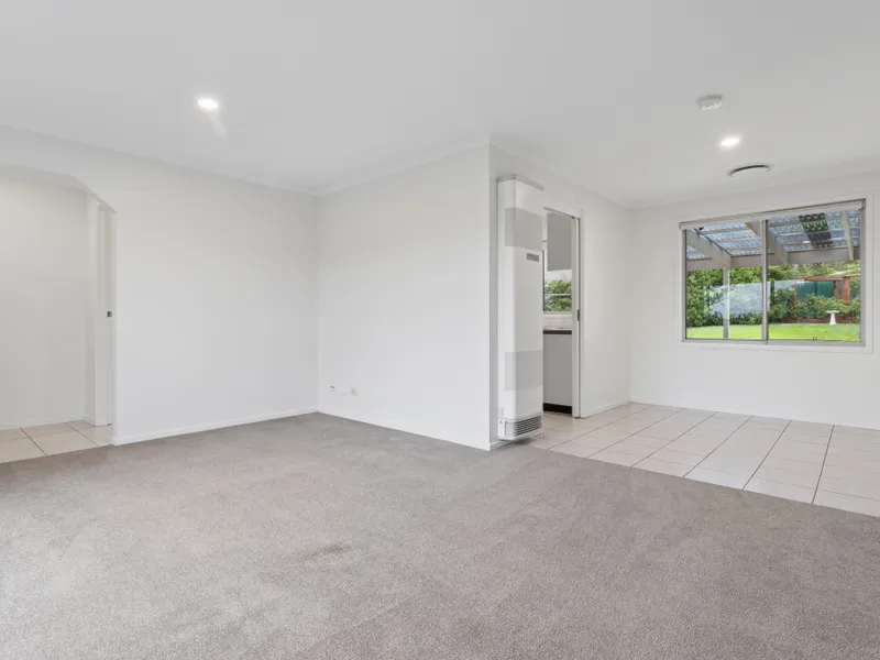 Designed with practical living in mind, the home features three generous bedrooms, two with built-in wardrobes. A centrally located two-way bathroom and separate toilet enhance everyday functionality. Multiple living areas—including lounge and dining space, as well as a separate family room—provide flexibility for both relaxed living and entertaining.