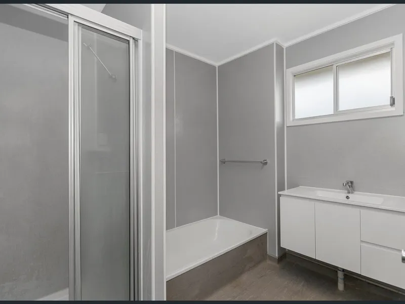 This home has been recently refreshed with new lighting, ceiling fans, power points, and switches, plus a brand new Colourbond roller door to the garage. The Bosch security system with motion detectors offers added peace of mind. The bathroom includes a separate shower, bathtub, and sleek gloss-white vanity.