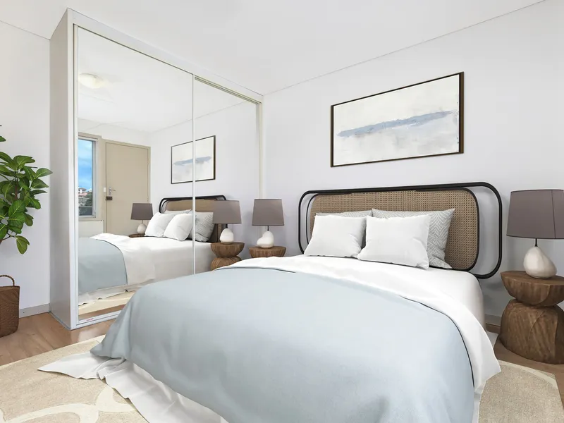 - Two generous bedrooms with high ceilings, including built-in wardrobes