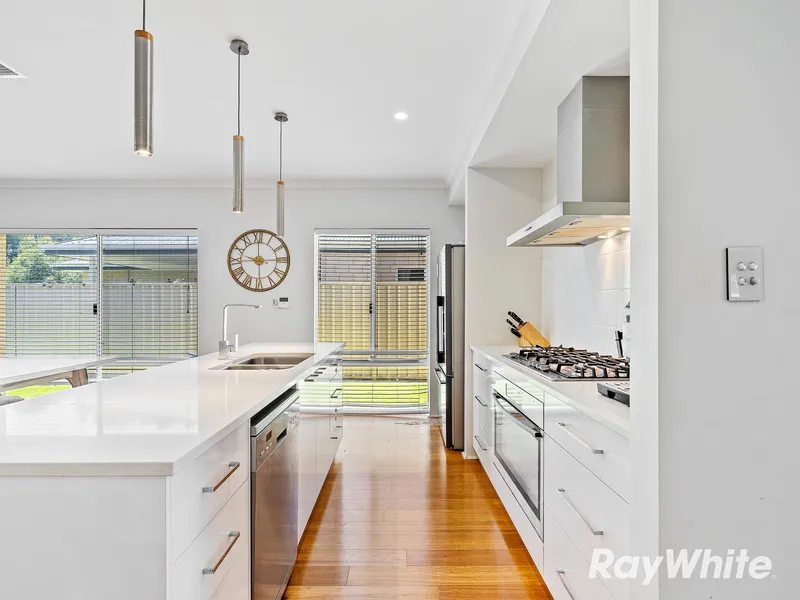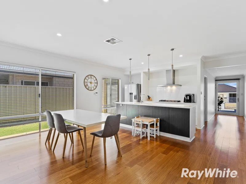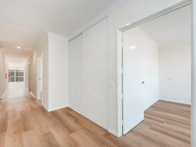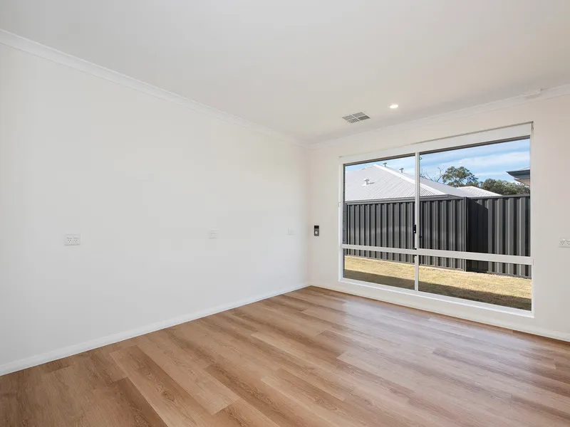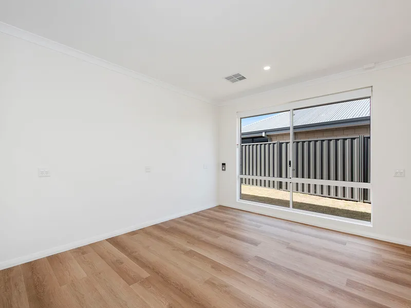 The open-plan living and dining area creates a welcoming hub of the home, complemented by reverse cycle air conditioning to ensure year-round comfort. Each bedroom features ample storage, providing both practicality and privacy for every member of the household.