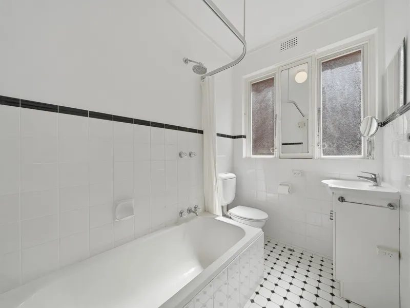 Exuding a timeless grandeur, this perfectly presented security apartment graces the first floor of 'Tudor Hall', an iconic Neo-Romanesque-style building constructed c1940. Located at the quieter end of Arden Street but still just moments from the beach and bustling village heart, it's set on the sun-soaked northern side, commanding ocean views from the rear. Lovingly preserved features bestow immense charm, including ornate ceilings, large sash windows and the distinctive balcony arches which give the address its unique character. Offering the advantage of a lock-up garage, this sensational apartment gives you grandstand seats to all of Coogee's wonderful coastal attractions, from Wylie's Baths and McIver's Ladies Baths to oceanfront parkland, a thriving culinary scene, shops and city transport.