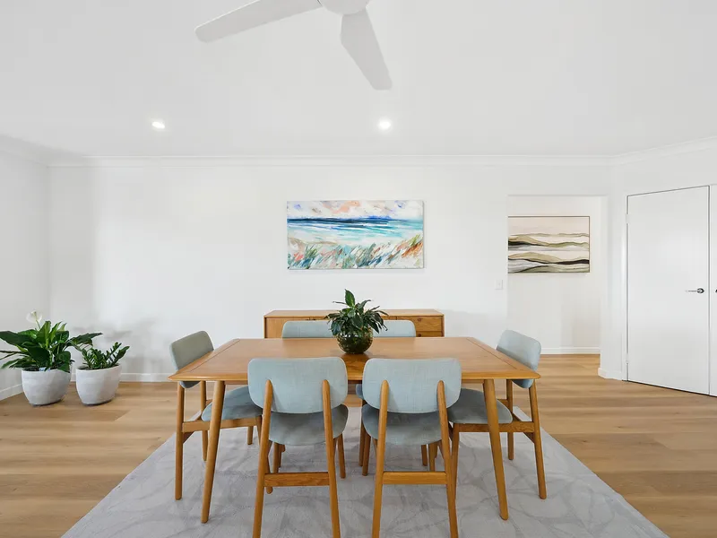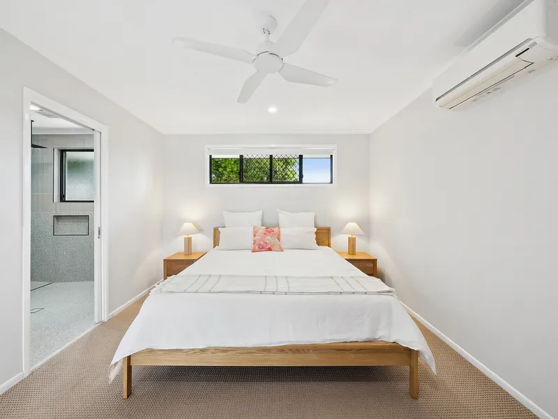 Inside, the home features light-filled living areas that create a welcoming atmosphere throughout. The kitchen connects easily to the dining and living zones, while generous bedrooms and practical finishes make the home comfortable and functional for families or those seeking a relaxed beachside base. Outdoor areas provide space to unwind, entertain or simply enjoy the coastal breezes that define the Coolum lifestyle.