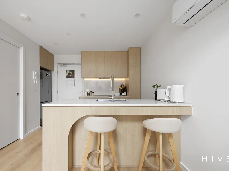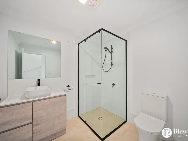 Enjoy bright, north-facing living in this thoughtfully designed three-level townhouse. The lower level features a flexible room with its own bathroom — perfect as a home office, gym, guest space, or additional living area. The central level brings family and friends together with an open-plan kitchen, dining, and lounge that opens onto a sunny balcony, creating a seamless indoor-outdoor flow. Upstairs, two spacious bedrooms each include private bathrooms, offering comfort and privacy for all residents.