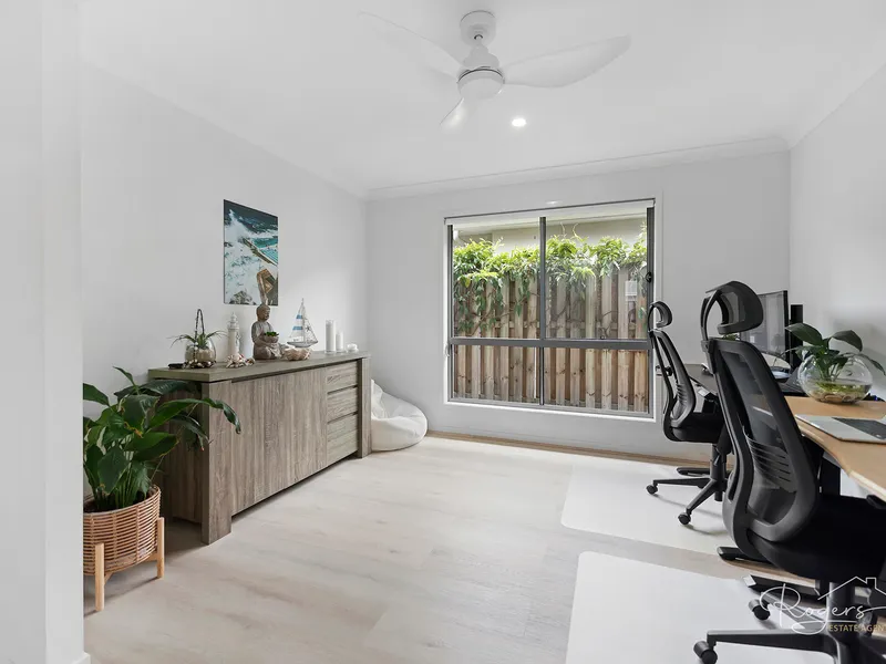 Located in a quiet Coomera street, this modern four-bedroom home offers spacious living, a separate media room and a low-maintenance backyard. With solar power, air conditioning and an EV charger, it's designed for comfortable, energy-efficient living.
