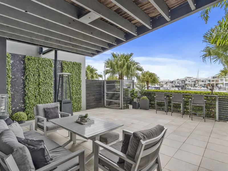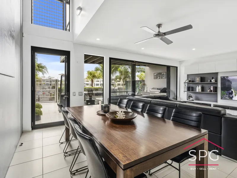 Through the gated entry you enter the open-plan living and dining area which flows seamlessly to a covered alfresco overlooking the boardwalk and marina — complete with BBQ, perfect for entertaining year-round.