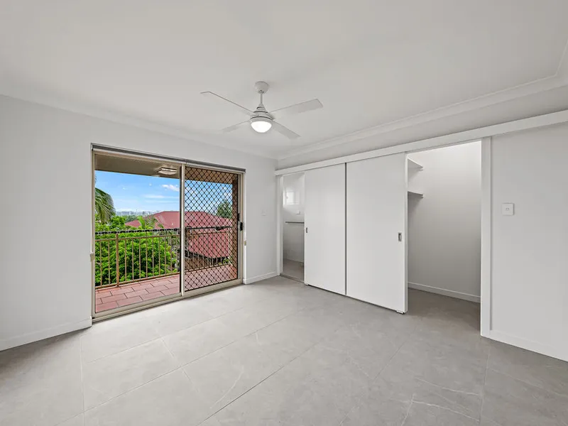 * Main bedroom with walk-in robe, ensuite, ceiling fan, and private balcony – perfect for your morning coffee