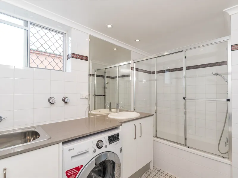 The spacious master bedroom boasts a walk-in robe (WIR) and private ensuite, providing a peaceful retreat at the end of the day. The second bedroom includes a built-in robe (BIR) and is serviced by a well-appointed central bathroom.