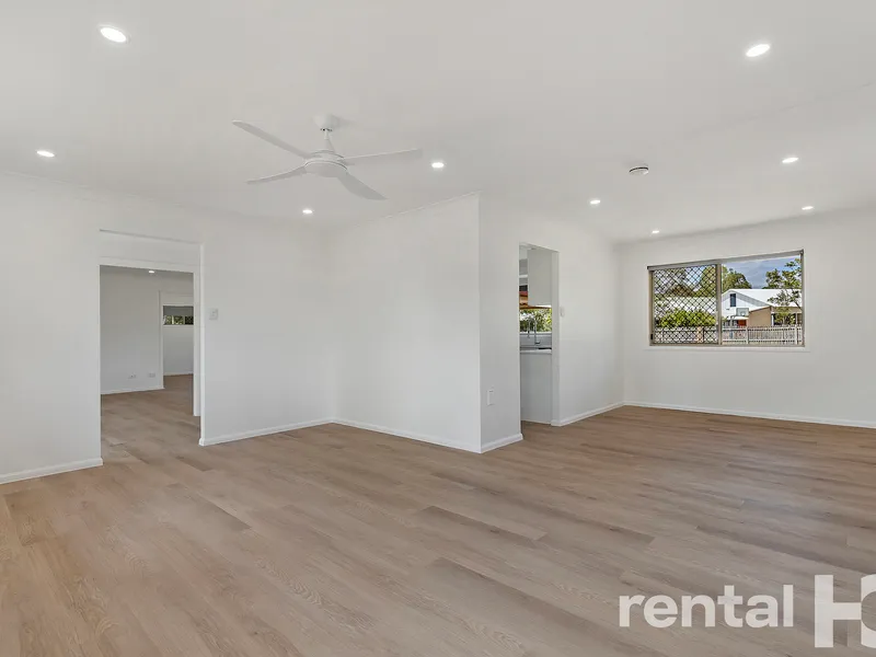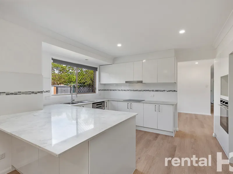 At the heart of the home is a light-filled open plan living and dining area, seamlessly connecting to a stylish modern kitchen featuring quality appliances, ample storage, and a large island bench – perfect for entertaining or everyday living.