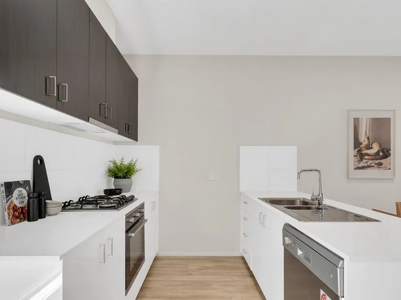 - Modern kitchen includes stainless steel appliances and generous bench space.