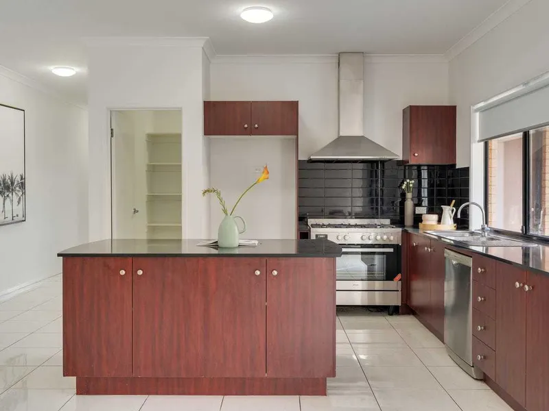 Sun-filled kitchen with 900mm appliances, perfect for cooking and entertaining.
