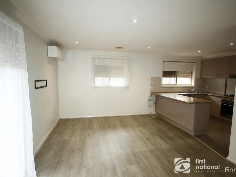Step inside to discover two generously sized bedrooms, both fitted with roller shutters for added privacy and security. The inviting lounge room provides a warm and welcoming space to relax, complete with a split system for year-round heating and cooling.