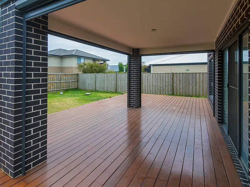 Beyond the living areas, this home opens up through to a spacious decked entertaining area, plus an oversized double garage with access through to the rear yard.