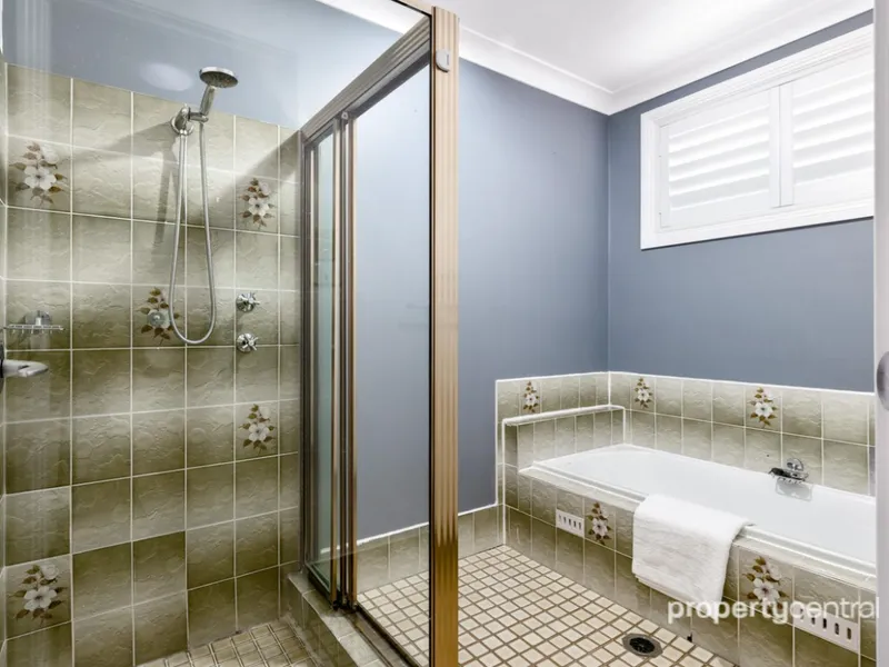This inviting three-bedroom, two-bathroom residence boasts a beautifully renovated ensuite, a double garage with drive-through access to the backyard and sits on a generous approx. 761m2 block. Ideal for families, the home features multiple living spaces, creating a versatile environment for relaxation and entertainment. Enjoy the modern touch of plantation shutters throughout, relish in the luxury of a large renovated kitchen with a spacious breakfast bar, and stay comfortable year-round with ducted air-conditioning, ceiling fans throughout, and downlights illuminating the stylish interiors. The residence also includes a 2000L stormwater tank for eco-friendly solutions, solar panels for energy efficiency, and offers dual side access to the expansive backyard. Noteworthy is the huge garden shed, providing ample storage space and practicality. Situated in a fantastic location, a short stroll takes you to the recently refurbished Cranebrook Shopping Centre.