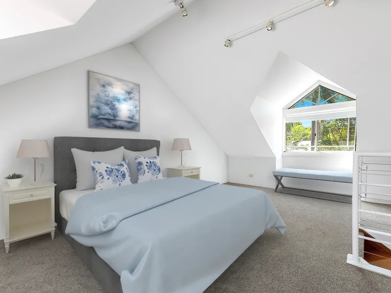 Modern kitchen with dishwasher, combined lounge and dining that opens out to a private courtyard with small lawn area and garden. Two bedrooms with built-ins and a 3rd loft style room that doubles up as a master bedroom or extra living space/home office.