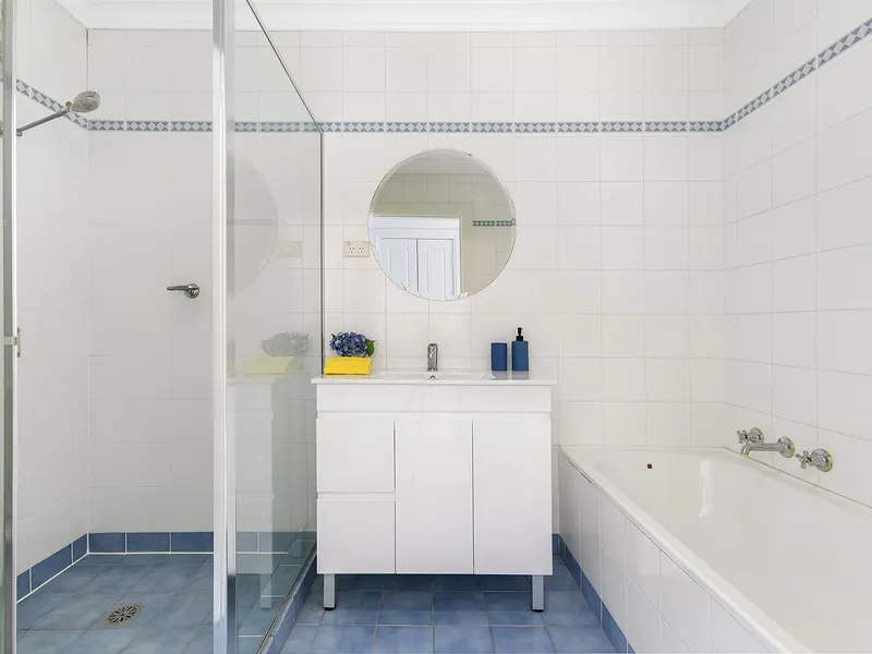 * Tidy bathroom with separate bath and shower